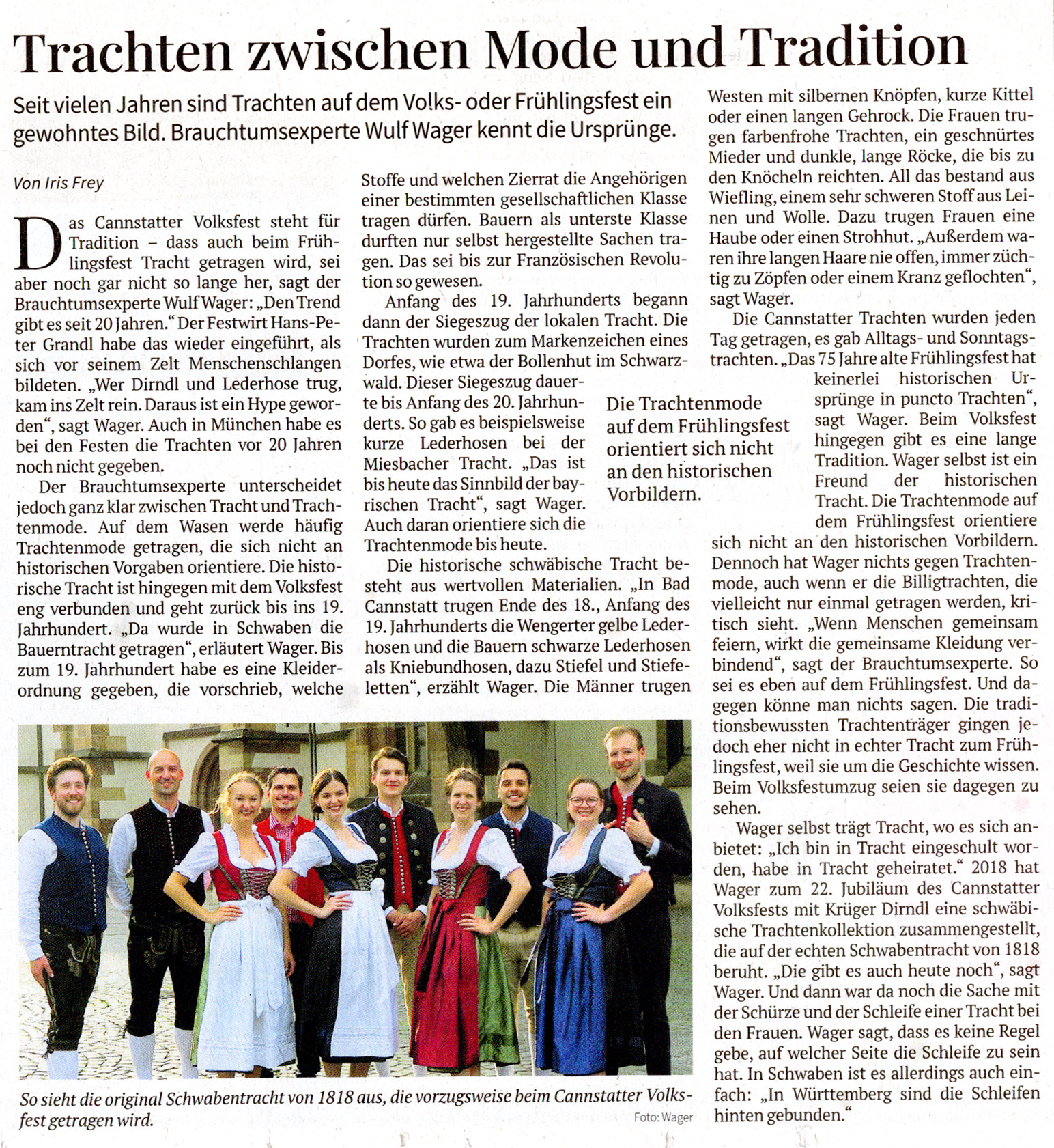 »Trachten zwischen Mode und Tradition – Seit vielen Jahren sind Trachten auf dem Volks- oder Frühlingsfest ein gewohntes Bild. Brauchtumsexperte Wulf Wager kennt die Ursprünge.«